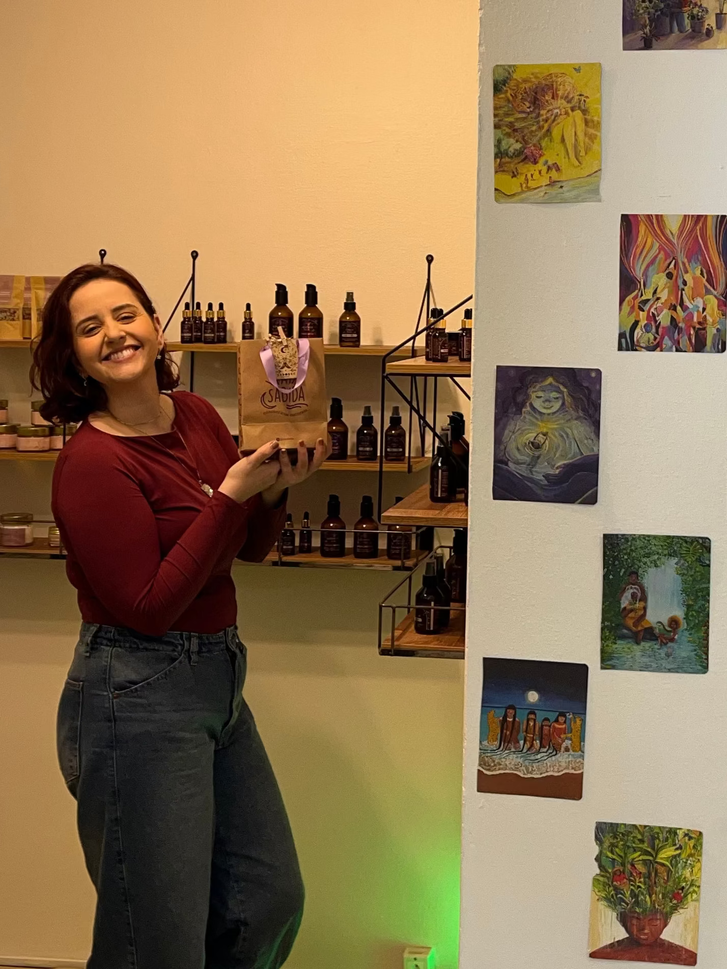 Aqui você pode retirar seus pedidos, sentir aromas e texturas com calma, tomar um cafézinho e trocar experiências.